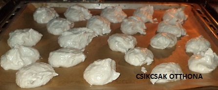Sütőpapirra 2 kanál segítségével púpos halmokat rakunk. Én evőkanállal csináltam, de legközelebb kiskanállal fogom.